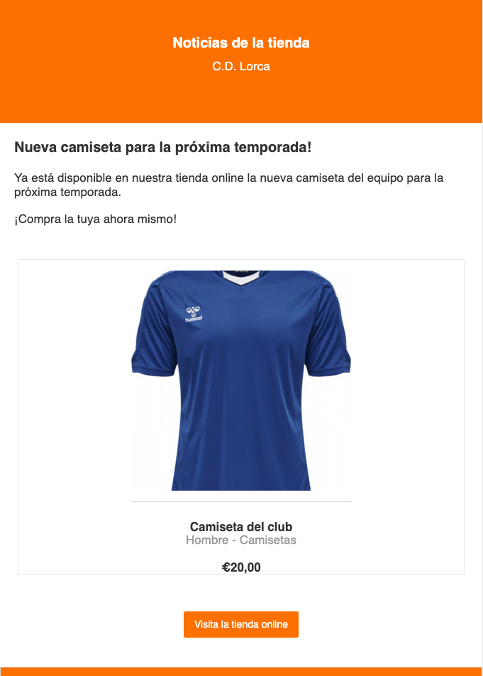 - Informar a los socios sobre nuevos productos del club, promociones especiales, ofertas, etc. en la tienda online del club en SportMember.