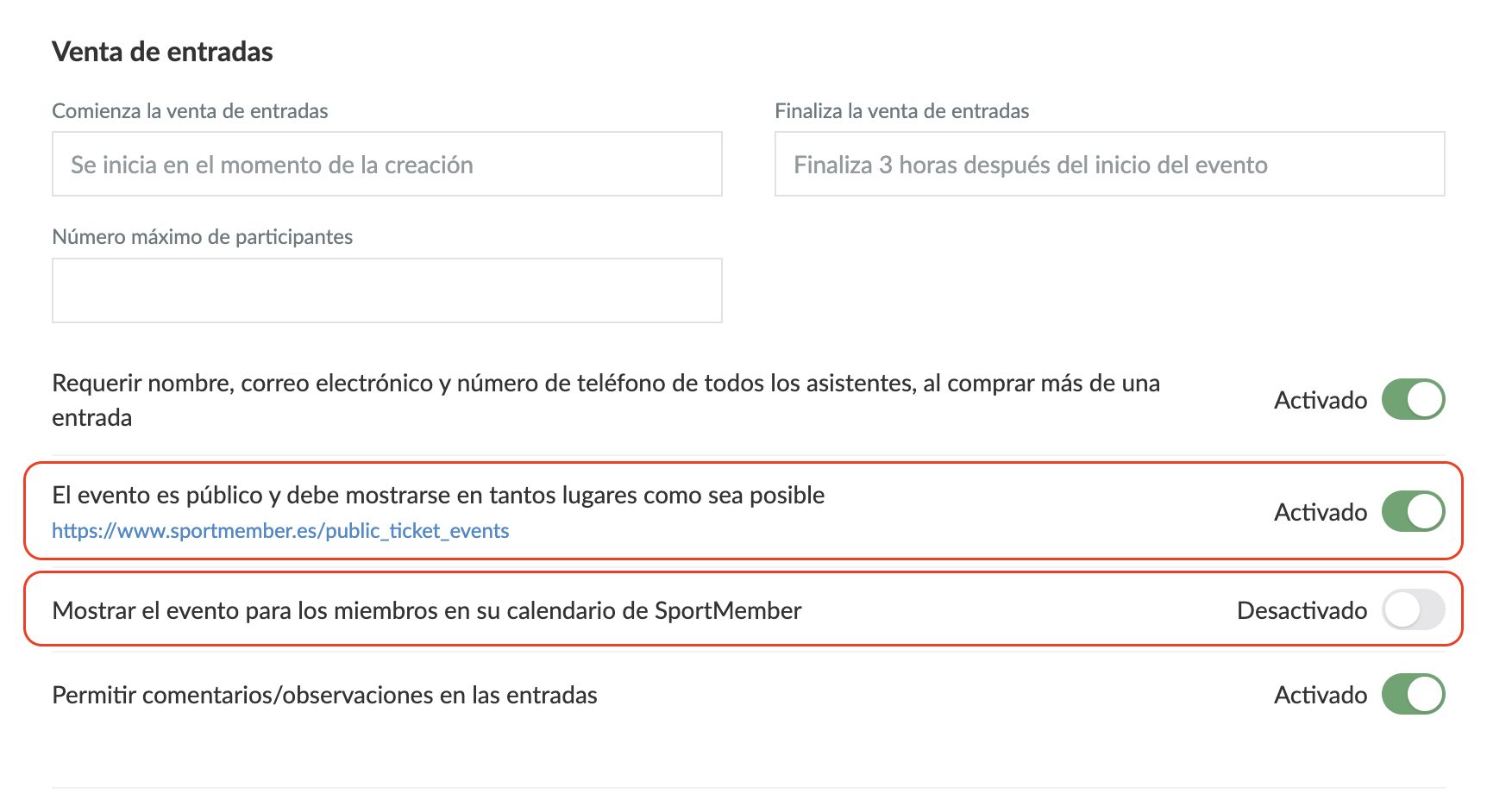 - Sólo los administradores del club y los encargados de la venta de entradas pueden crear eventos