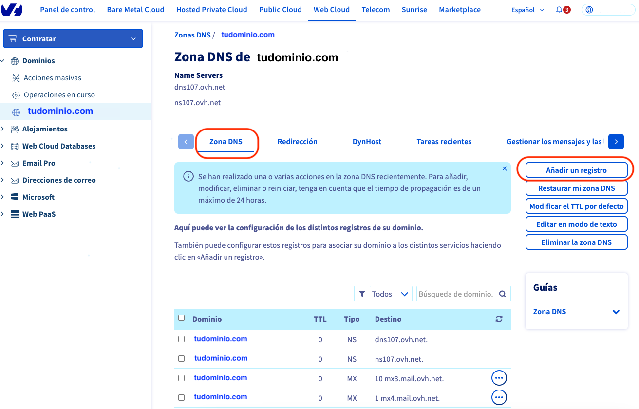 - Muchos clubes en SportMember tienen sus dominios registrados en OVHcloud, por eso armamos esta guía para crear el registro A con OVH. En la mayoria de los proveedores de hosting el proceso es similar.
