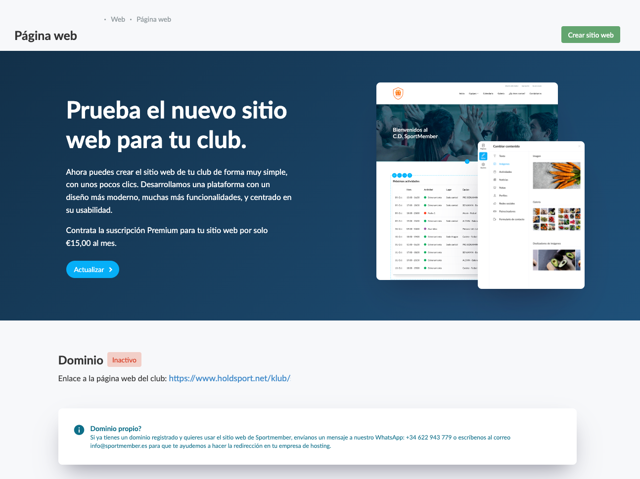 - Olvídate de actualizar tu sitio web: se actualiza automáticamente con el contenido que subas a SportMember