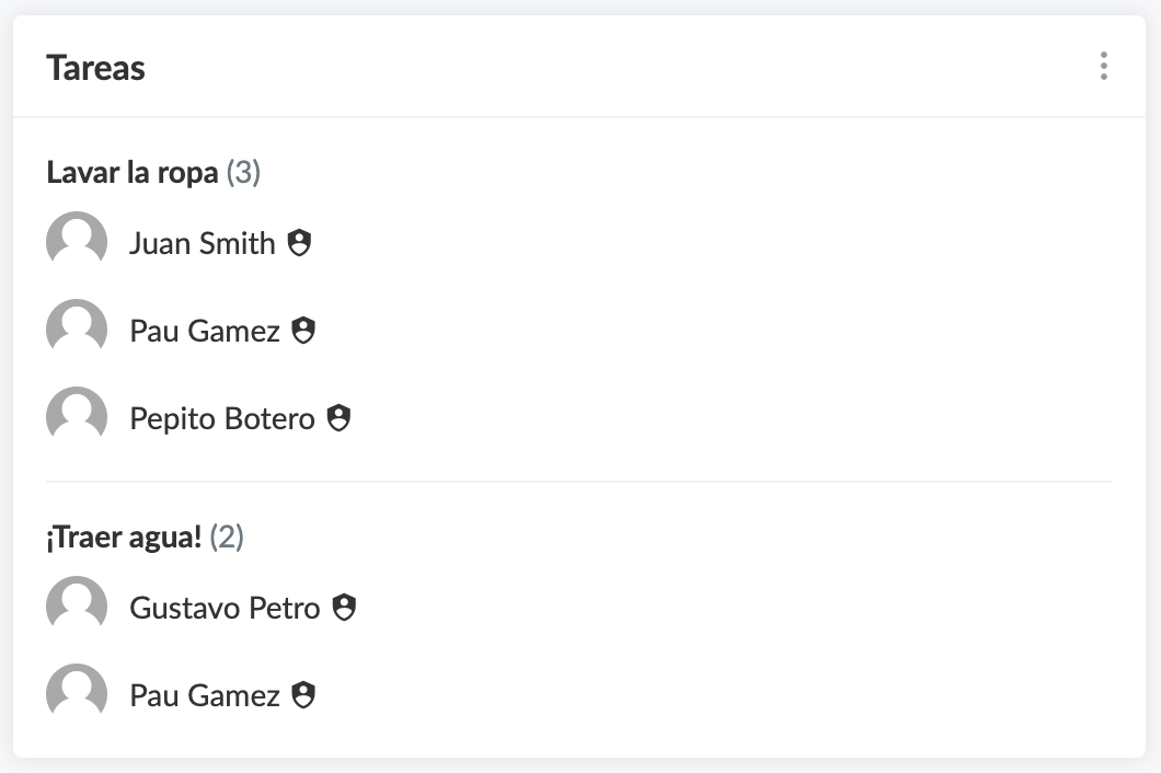 La actividad muestra ahora las tareas y la(s) persona(s) responsable(s) de la misma en la actividad.