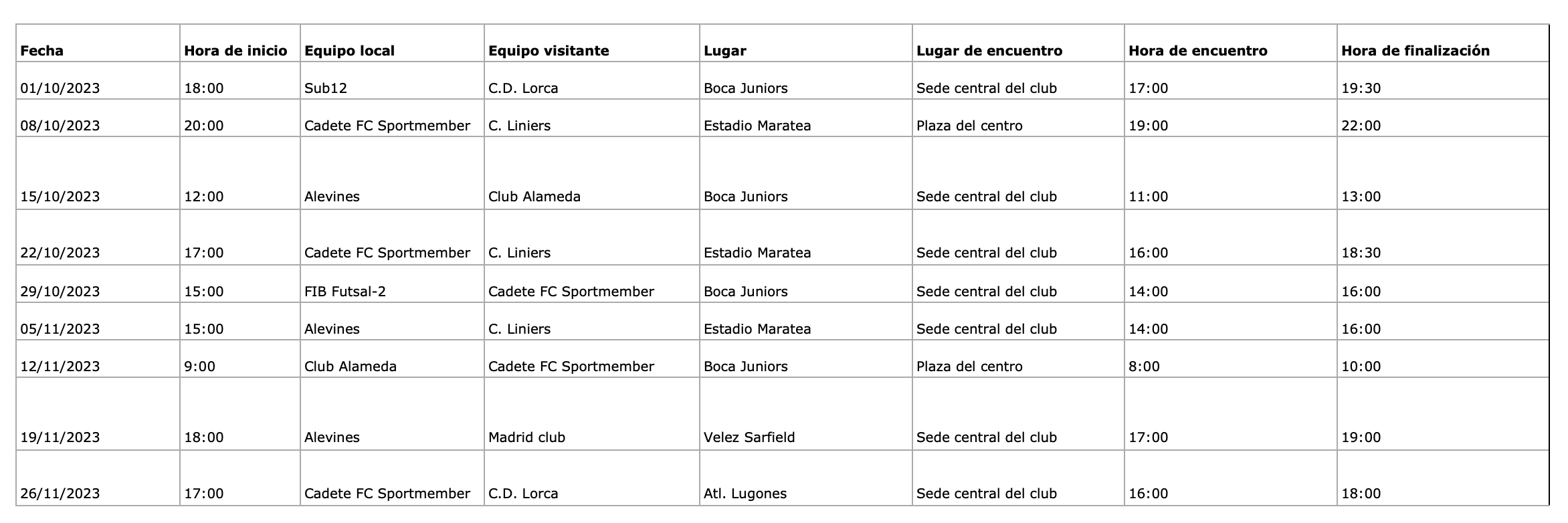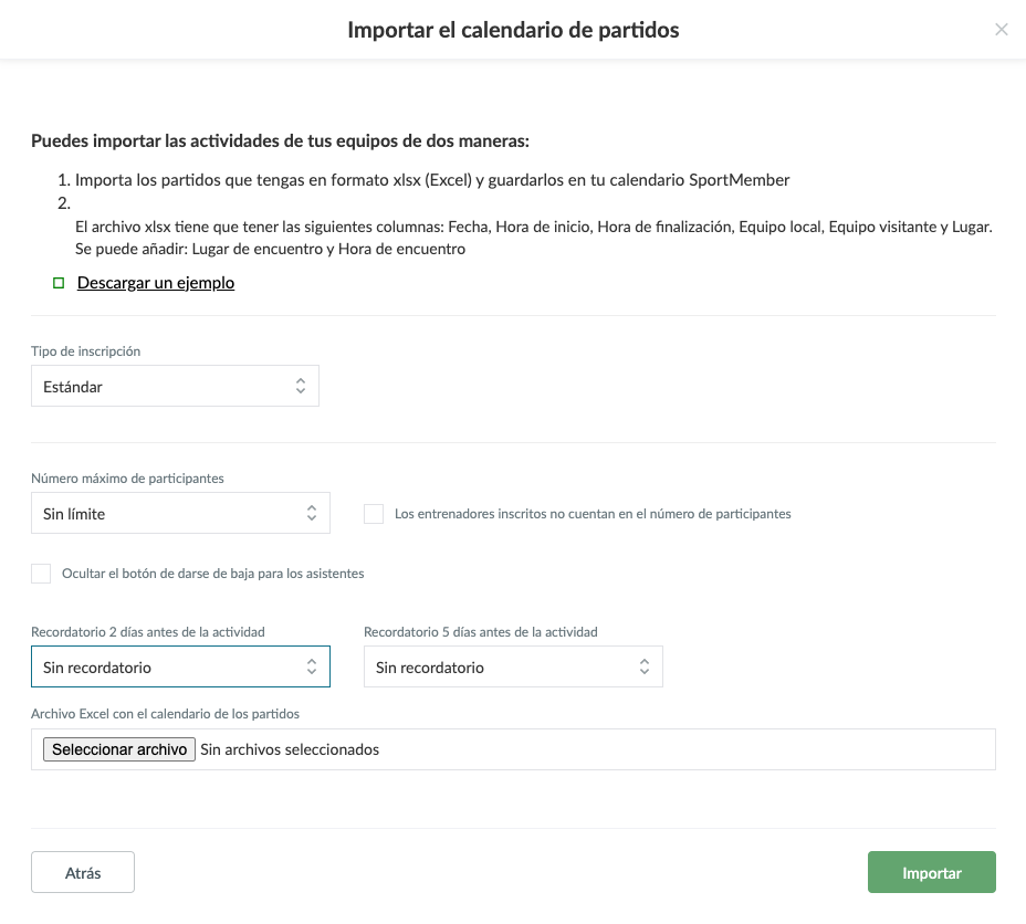 - Haz clic en Importar el calendario de los partidos con archivo formato xlsx (Excel)