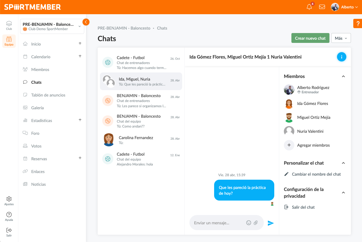 - Si no has leído el último mensaje de chat, aparecerá con una fuente negra y gruesa y un icono azul a la derecha del mensaje