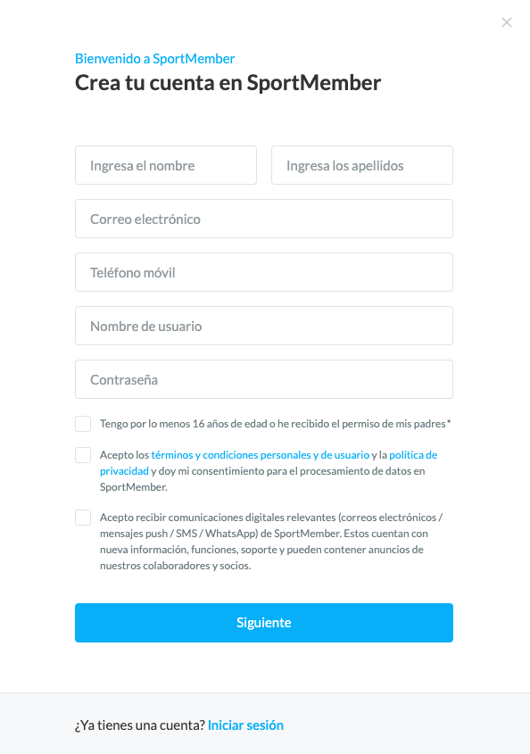 Descarga la aplicación de SportMember y Crea un equipo