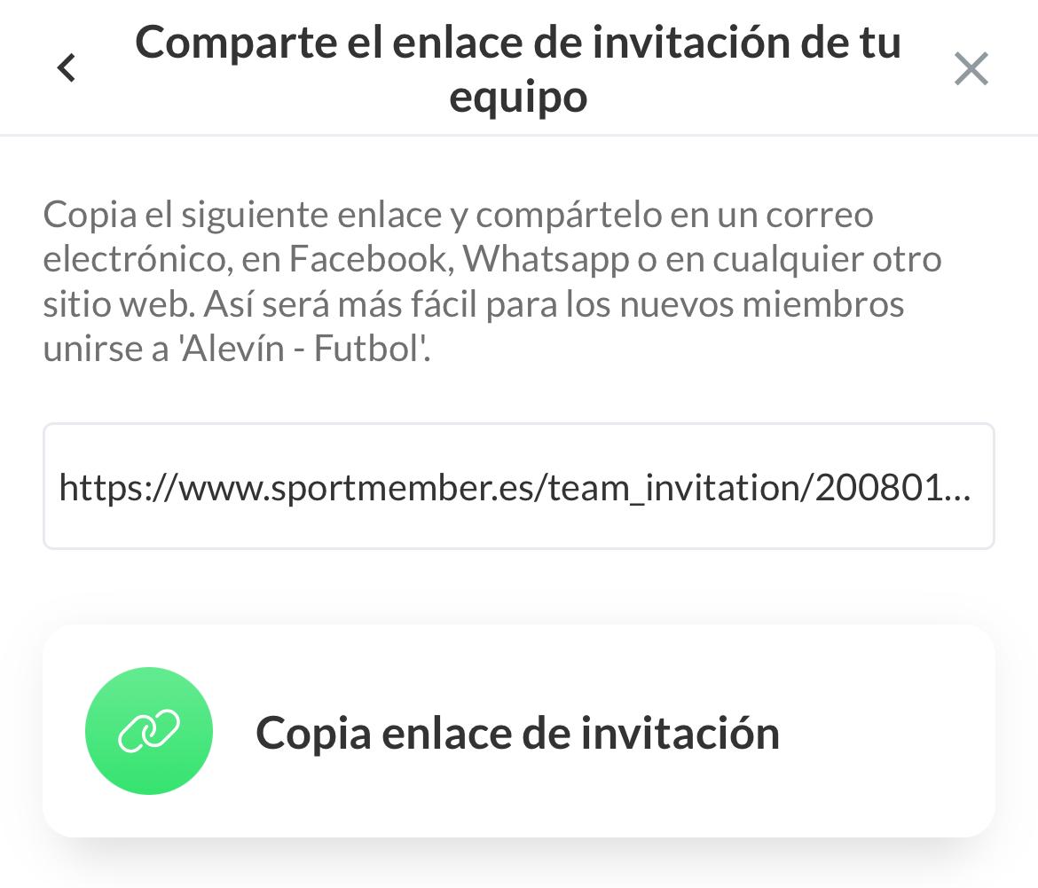 En SportMember puedes enviar enlaces de invitación a los miembros de tu equipo si tienes su dirección de correo electrónico, número de teléfono para enviarle un mensaje de texto o un grupo de WhatsApp. Por lo tanto, no es necesario registrar manualmente a los miembros del equipo uno por uno. Los miembros se inscriben simplemente haciendo clic en el enlace recibido.