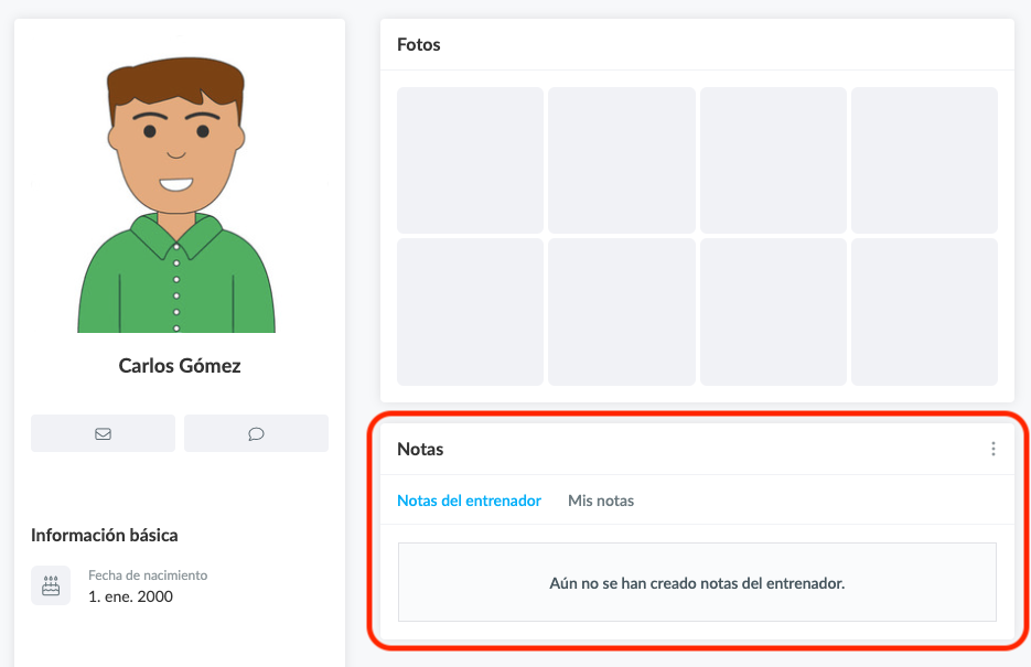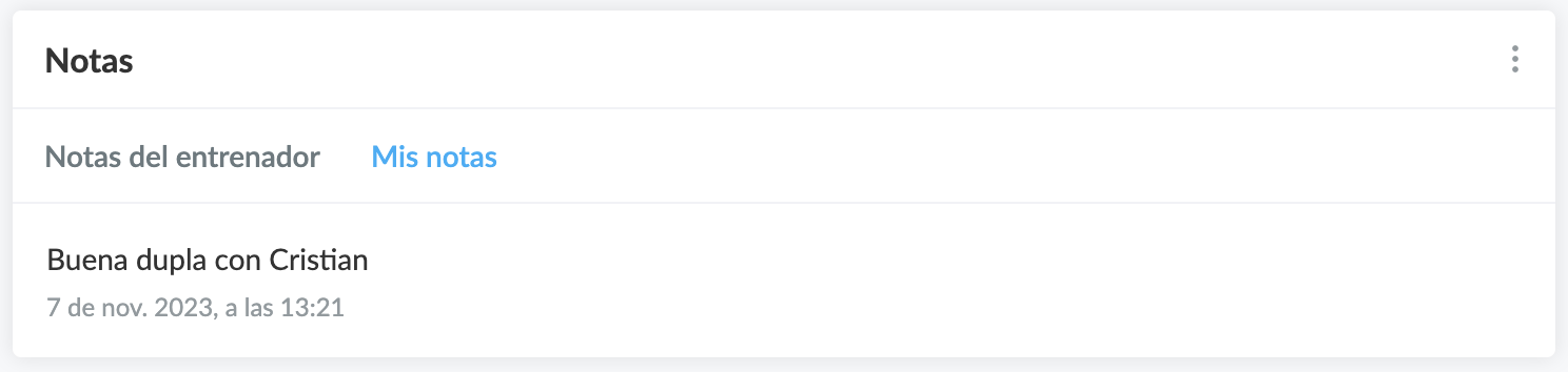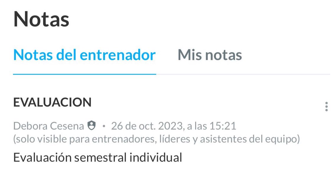 - Las notas privadas te ayudan a hacer un seguimiento individual de cada deportista, o escribir un recordatorio personal. Solo tú puedes ver tus notas privadas.