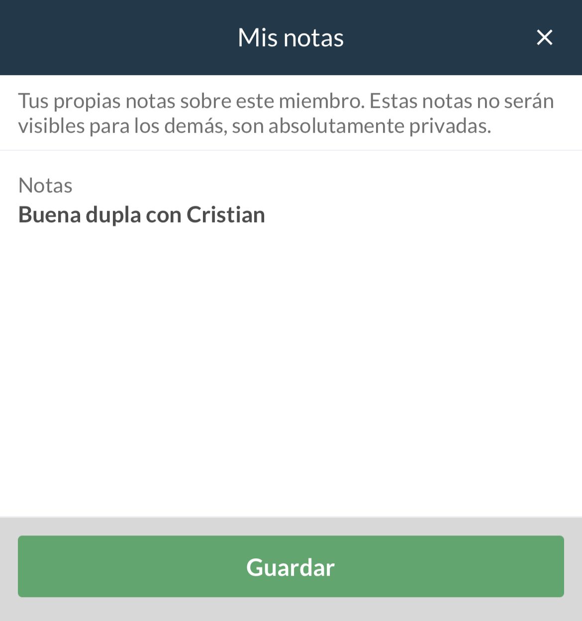 Aquí puedes escribir cualquier cosa que necesites recordar sobre el deportista. Una vez que lo hayas hecho podrás ver tus notas en el perfil del deportista.