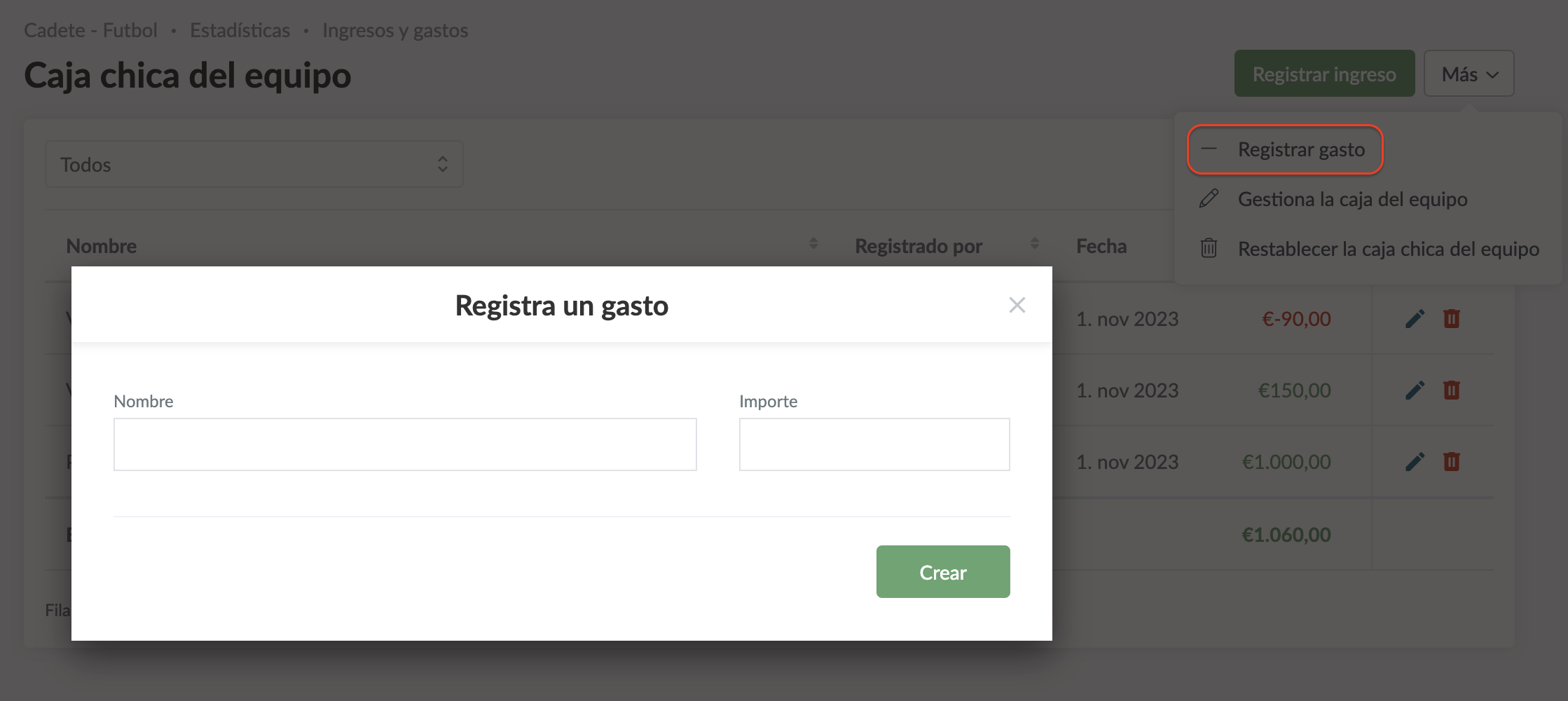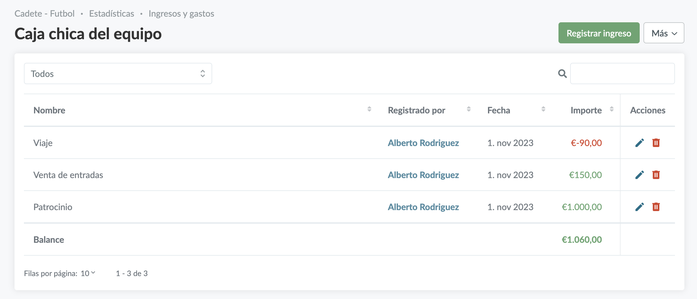 - La caja chica del equipo te permite, como entrenador, registrar los ingresos y gastos de tu equipo