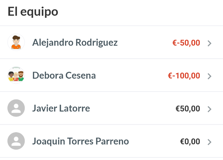 Ejemplo: Alejandro y Debora tienen sanciones sin pagar, mientras que Javier ha pagado demás. Joaquin no debe nada.