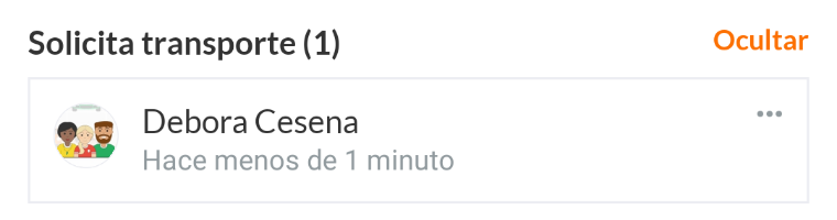 Tus compañeros de equipo pueden ver ahora que has solicitado un transporte y pueden crear uno.