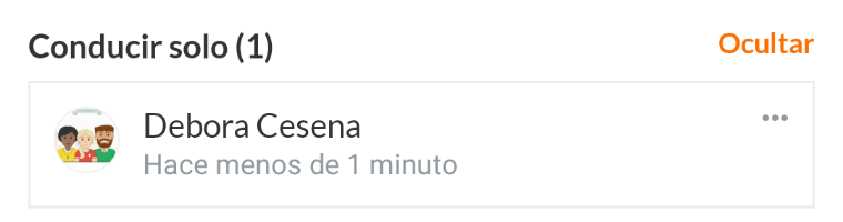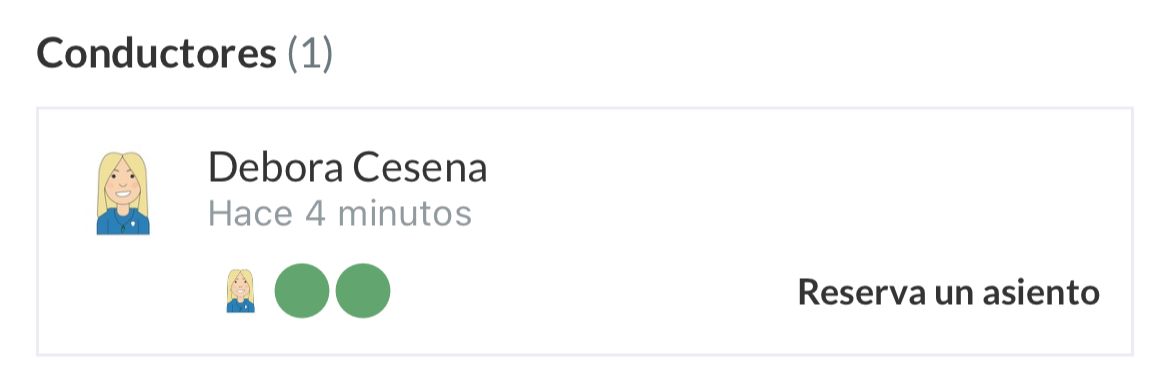 Ejemplo: Débora es conductora y tiene 2 asientos disponibles (verde)