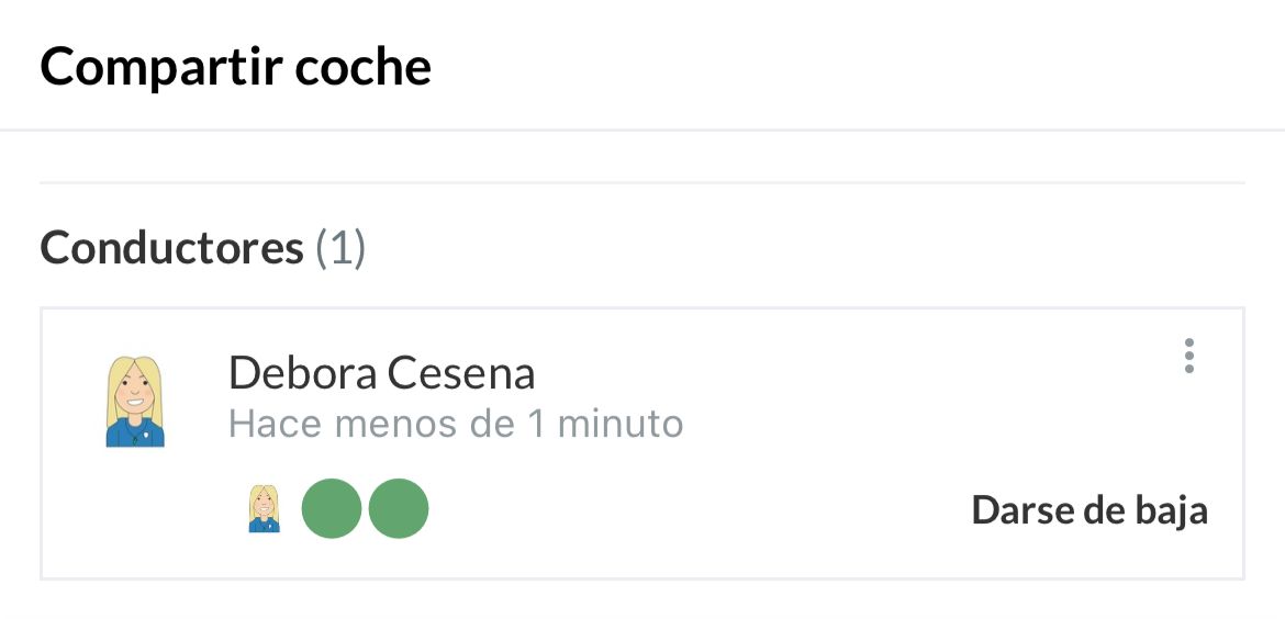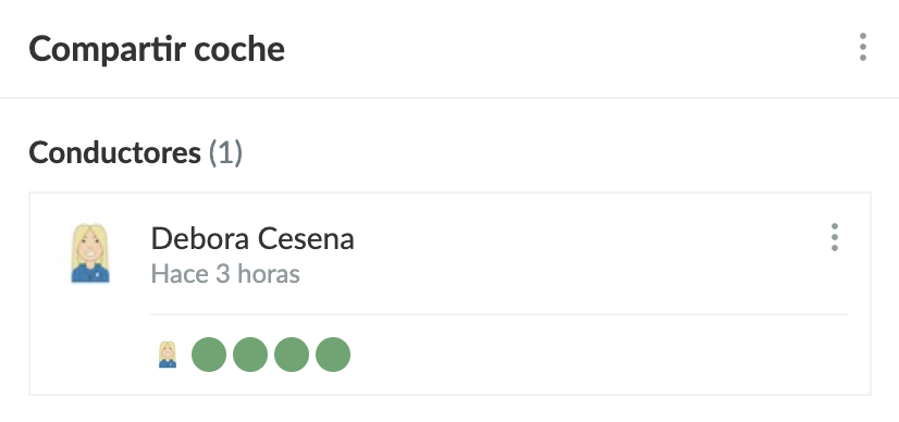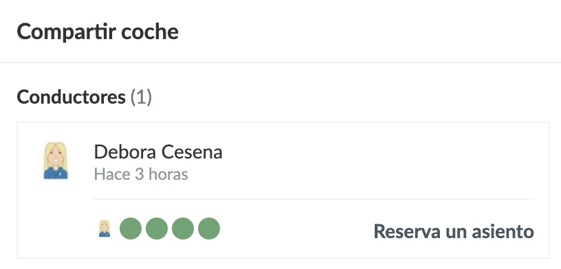 Ejemplo: Debora es conductora y tiene 3 asientos en su coche. Por ahora ninguno están reservado, por lo que ahora hay 2 vacantes (verde)