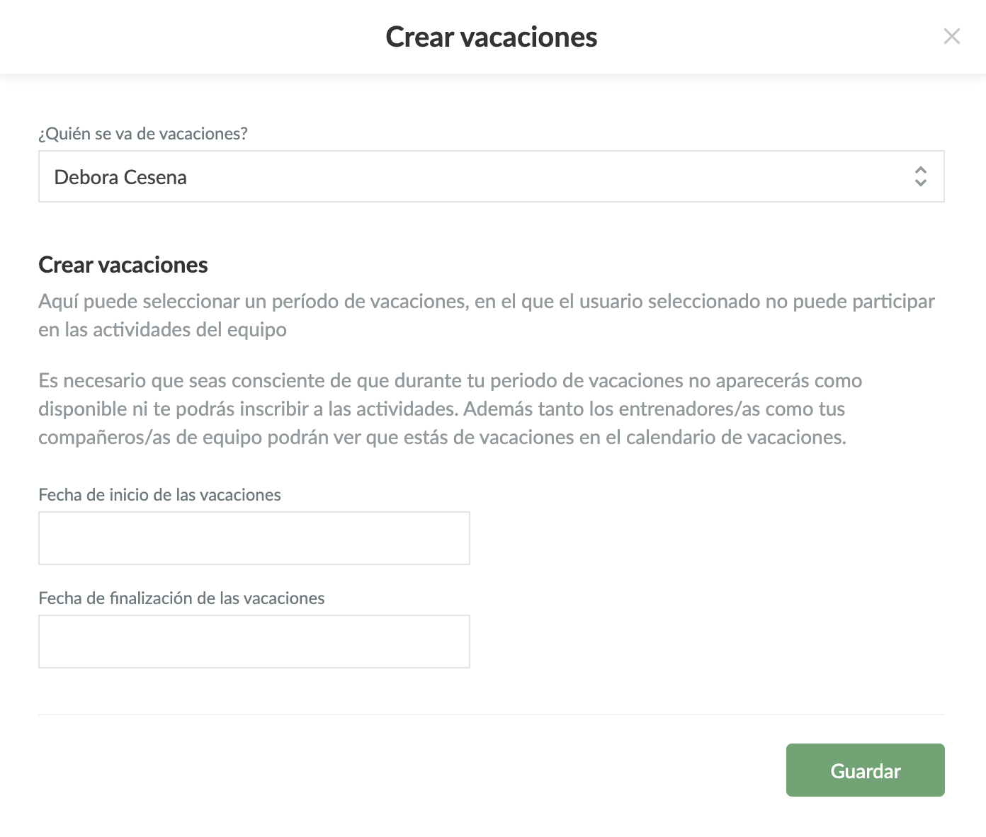 - Tu entrenador podrá ver que no estás disponible durante tu período de vacaciones