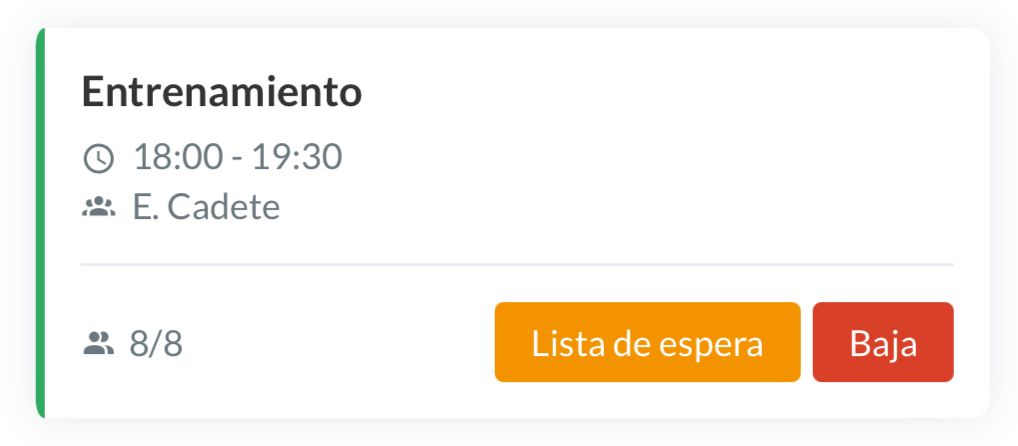 - Si estás en la posición número 1 de la lista de espera y un miembro ya inscrito se da de baja de la actividad, quedarás automáticamente inscrito.