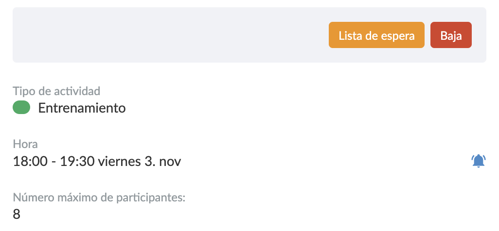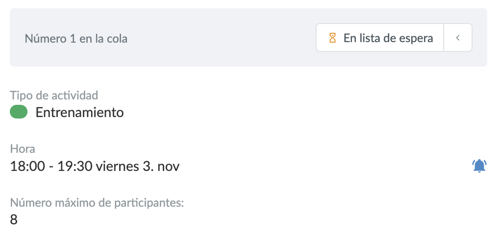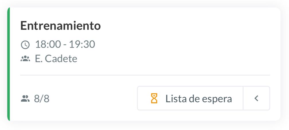 - Sólo podrás inscribirte en lista de espera si tu entrenador definió un número máximo de participantes, habilitó la lista de espera y si se completo el cupo de participantes.