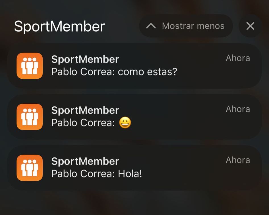 Si has descargado la aplicación de SportMember, un mensaje de chat aparecerá como una notificación push en tu teléfono móvil: