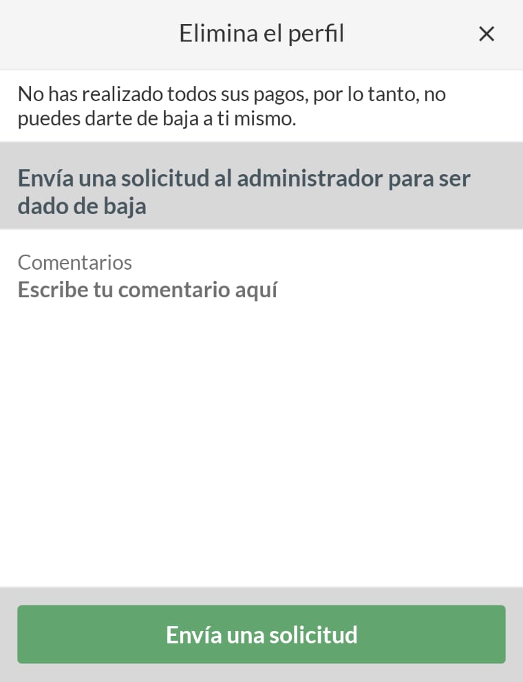 Presiona en Eliminar mi perfil