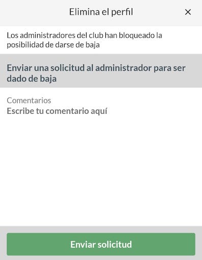 NOTA: Si tienes una cuota pendiente en el club NO se te permitirá darte de baja del equipo hasta que la pagues. También puedes enviar al administrador del club una solicitud para que te de de baja.