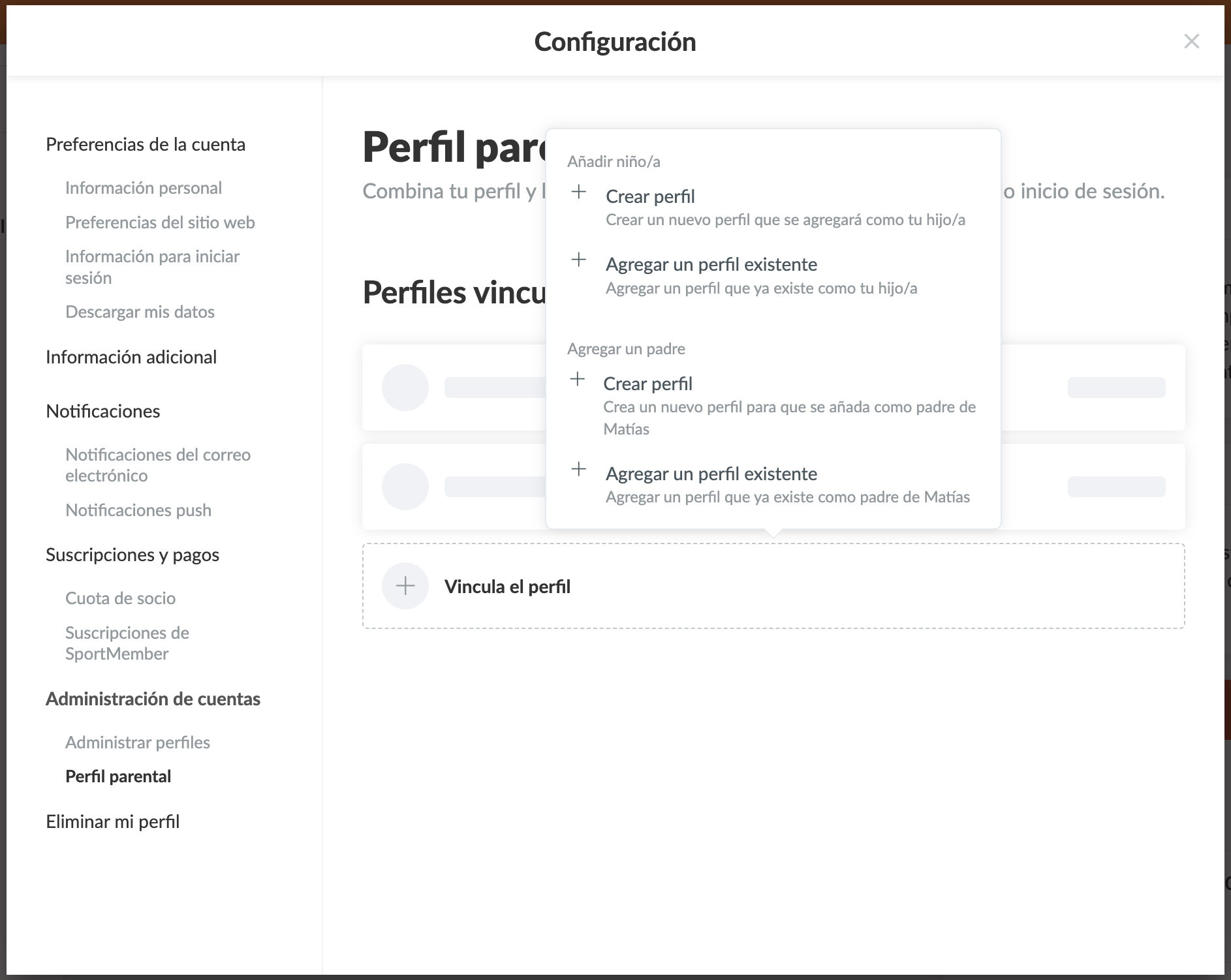CONSEJO: Puedes vincular tantos perfiles de hijos como quieras a tu perfil parental. Luego podrás ver o ingresar a los perfiles de tus hijos vinculados.