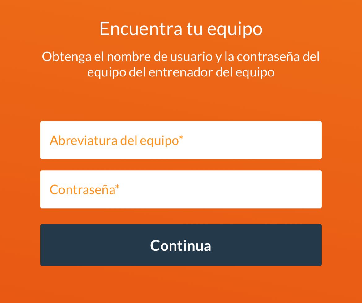 Ingresa la abreviatura del equipo y la contraseña que te ha dado el entrenador del equipo.