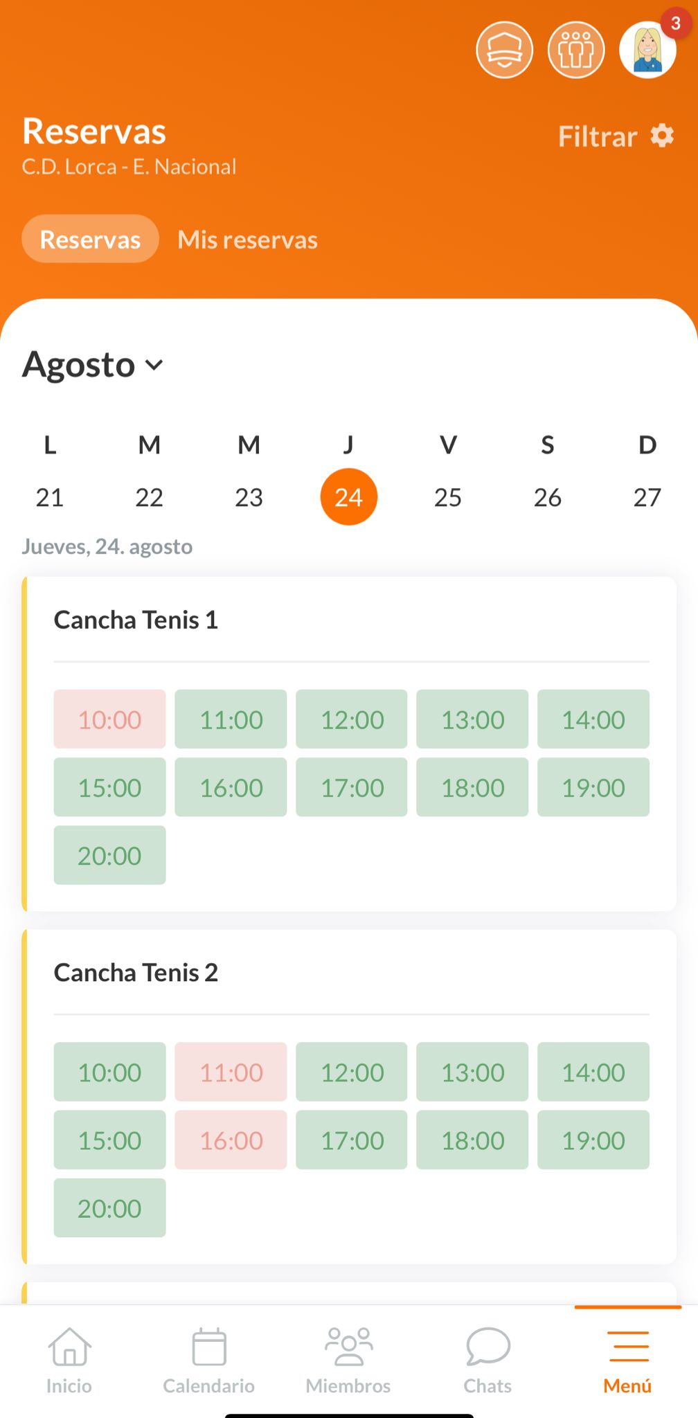 1. Presiona en Menú en el margen inferior derecho 2. Presiona en Reservas