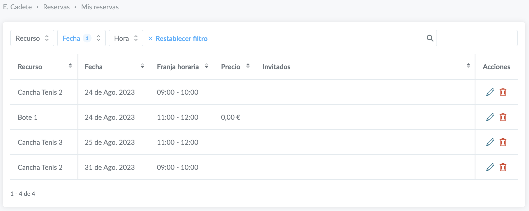 En el menú de la izquierda, dentro de Reservas, encontrarás la opción Mis reservas. Aquí puedes encontrar un detalle de todas las reservas que tienes.